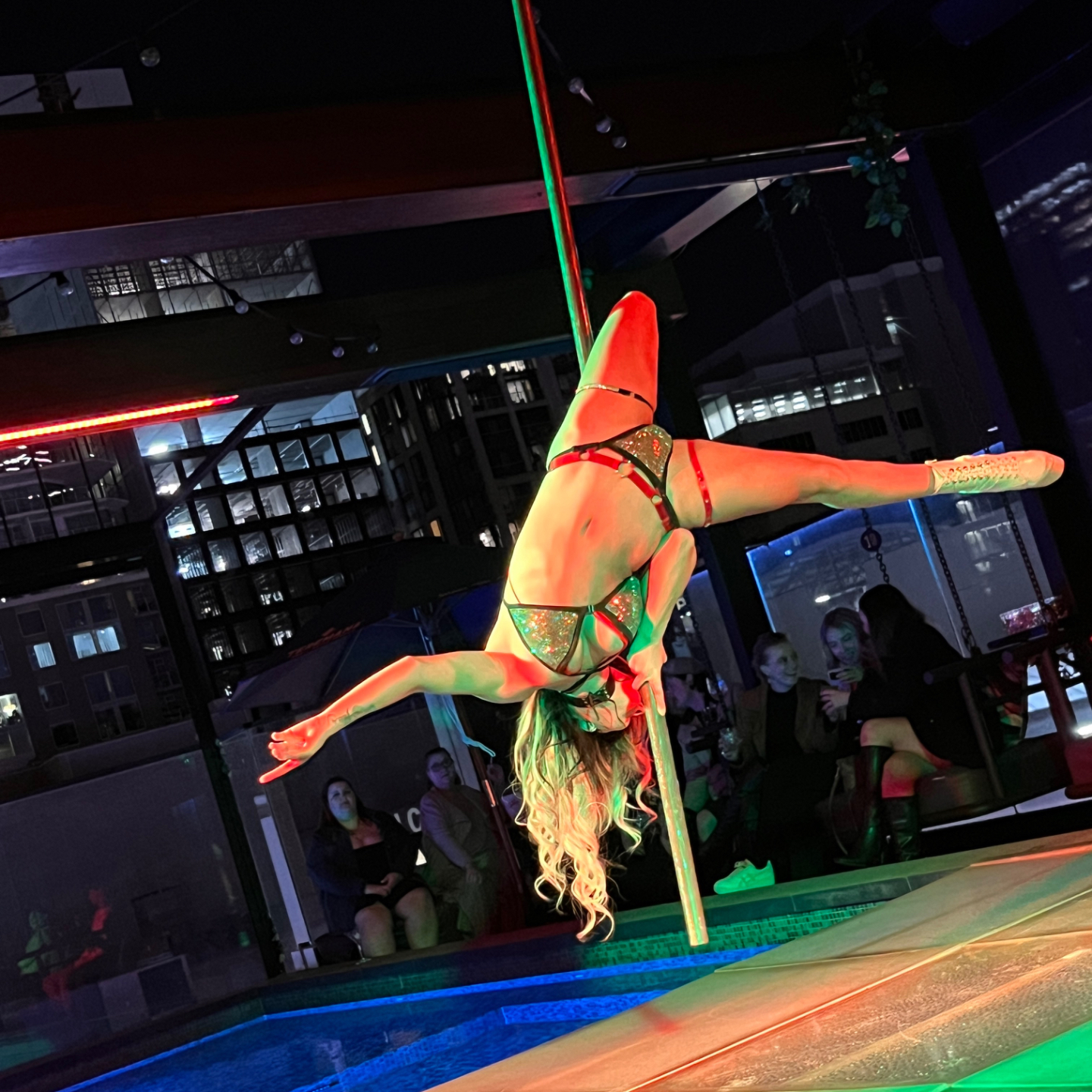 “Chrome Siren” is performed by a World Champion Pole Artist, delivering a level of precision, presence, and technical excellence. Designed to command attention while maintaining a polished, high end aesthetic, it balances athleticism with artistry across a range of event environments.